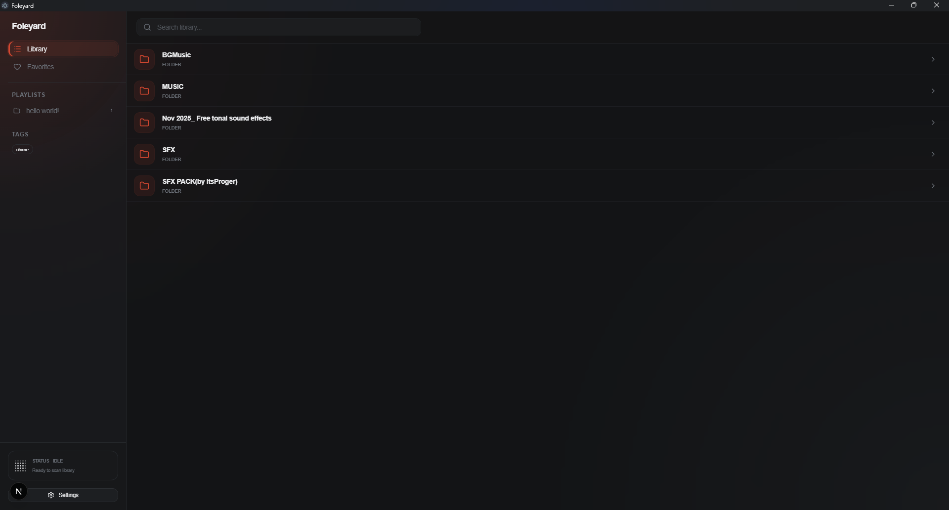 Stop digging through nested folders. Foleyard indexes your local drives and makes everything instantly searchable and playable.
